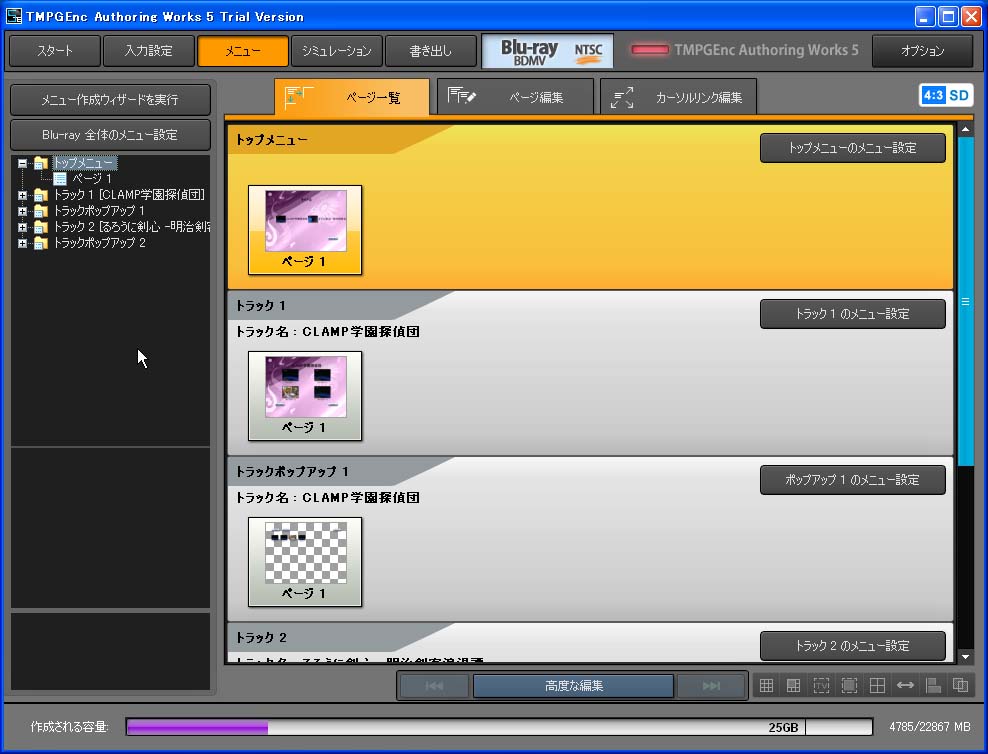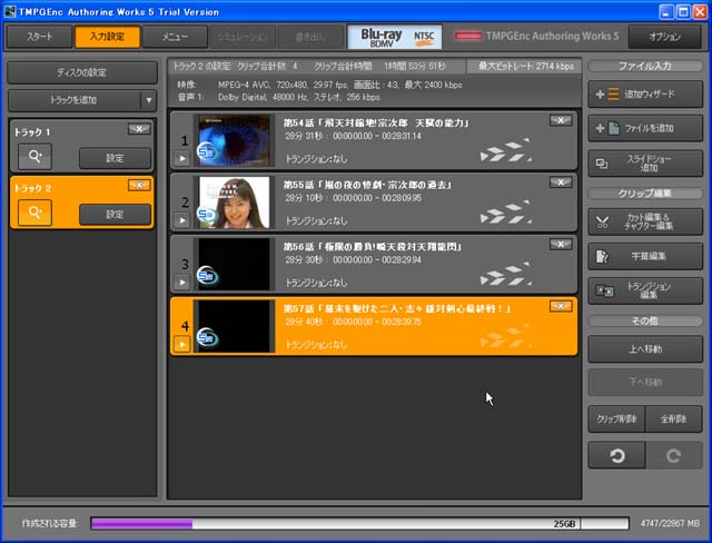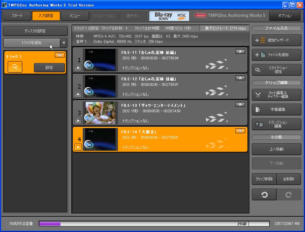 オーサリングにはPEGASYS社の「TMPGEnc Authoring Works 5」というソフトウェアを使用します。