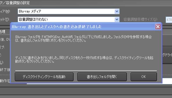 エンコードして作成したBDMVフォーマットの動画をブルーレイ・ディスクに書き込みます。