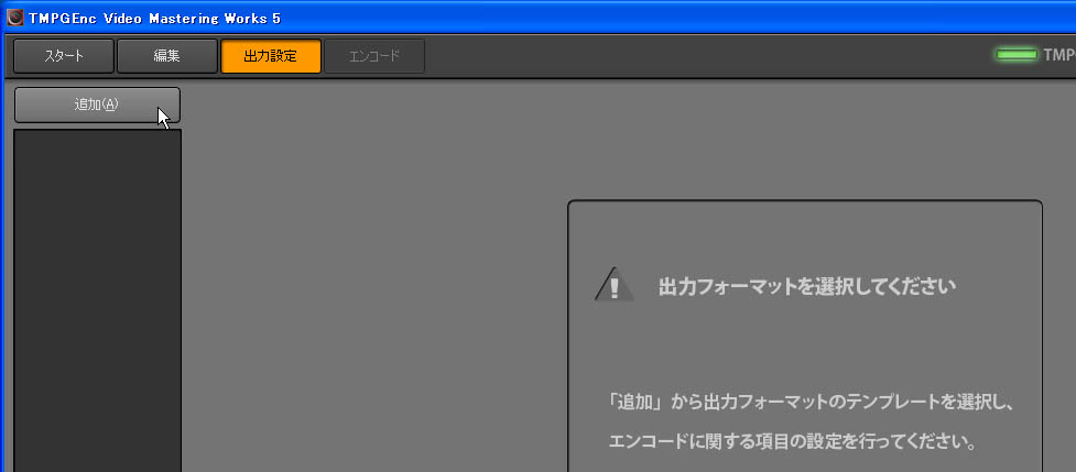 エンコードにはPEGASYS社の「TMPGEnc Video Mastering Works 5」というソフトウェアを使用します。